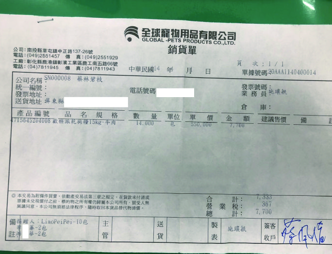 4/22(二)14包狗乾糧 送達 蔡林碧枝 DETAIL
