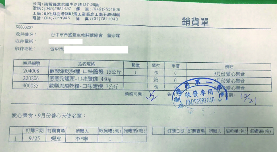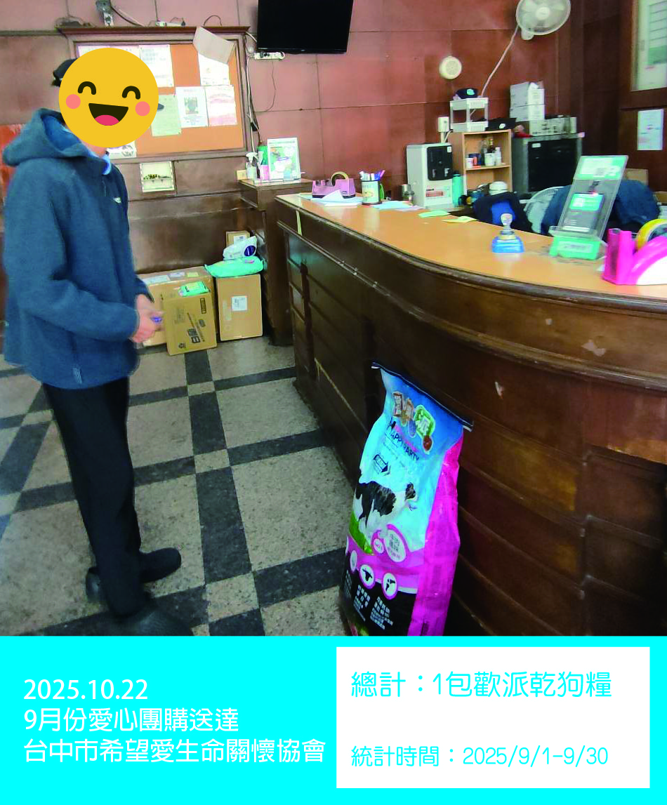 10/22(三)9月份愛心團購送達台中市希望愛生命關懷協會 DETAIL