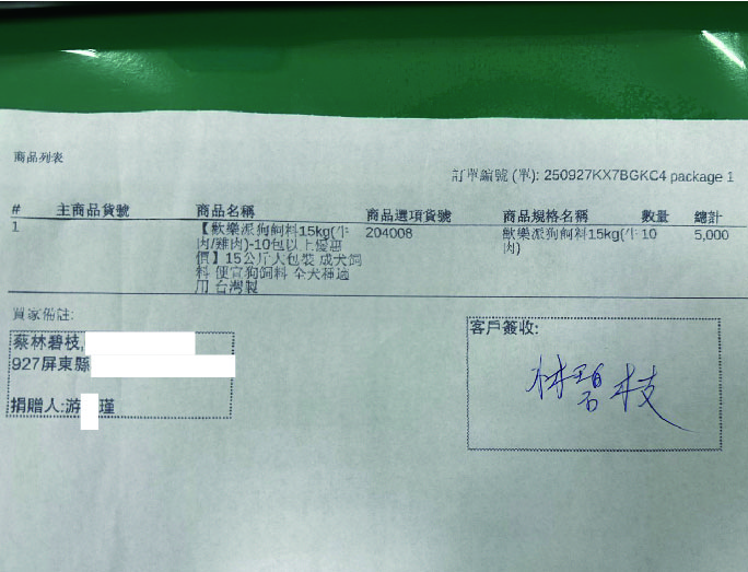 11/6(四)10包狗乾糧 送達 蔡林碧枝 DETAIL