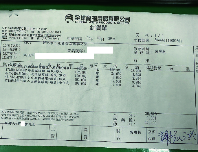 11/7(五)40包貓乾糧+16箱貓罐頭 送達 新北市三芝區公立動物之家