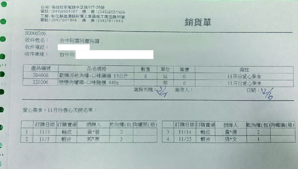 12/10(三)11月份愛心團購送達台中阿雪阿嬤狗園
