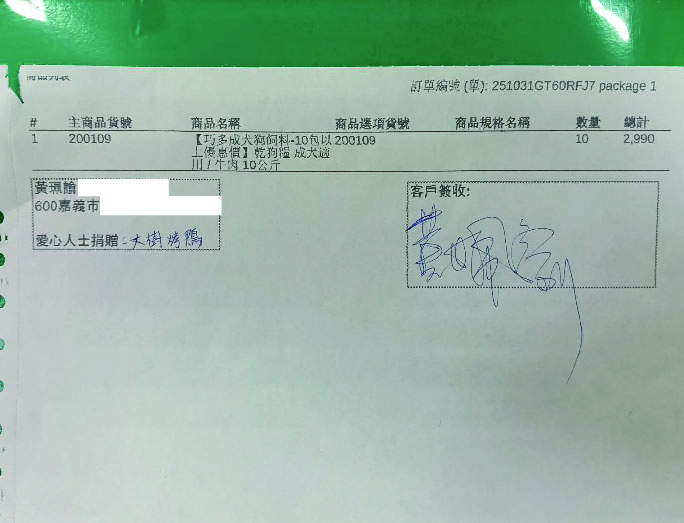 12/12(五)10包狗乾糧 送達 黃珮諭