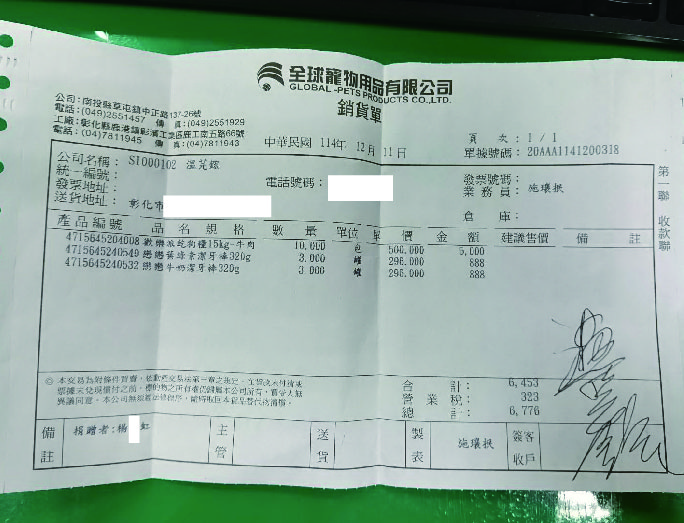 12/12(五)10包狗乾糧+6罐狗零食 送達 溫芫鋐 DETAIL