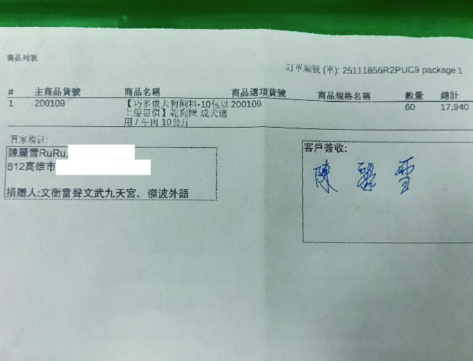 12/17(三)100包狗乾糧 送達 陳麗雪RuRu DETAIL