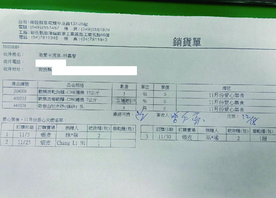 12/23(二)11月份愛心團購送達南投-浪愛不流浪