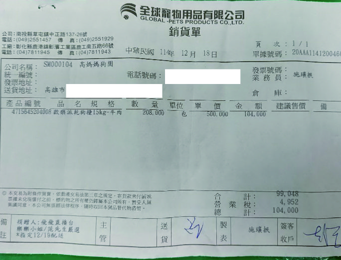 12/19(五)208包狗乾糧 送達 美濃高媽媽 DETAIL