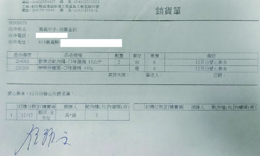1/20(二)12月份愛心團購送達嘉義-侯鄭金釵愛媽
