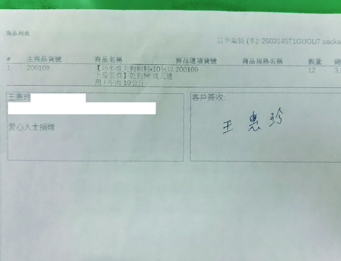 3/25(三)12包狗乾糧 送達 王惠玲 DETAIL