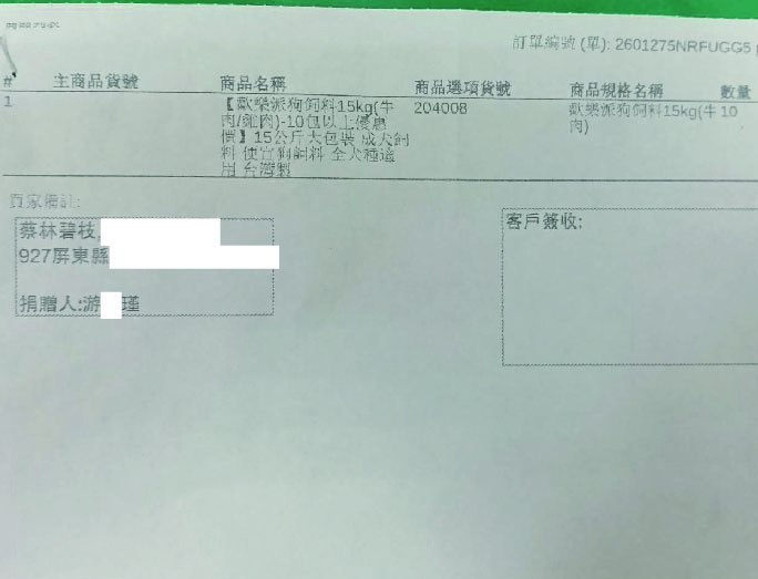 3/25(三)10包狗乾糧 送達 蔡林碧枝 DETAIL