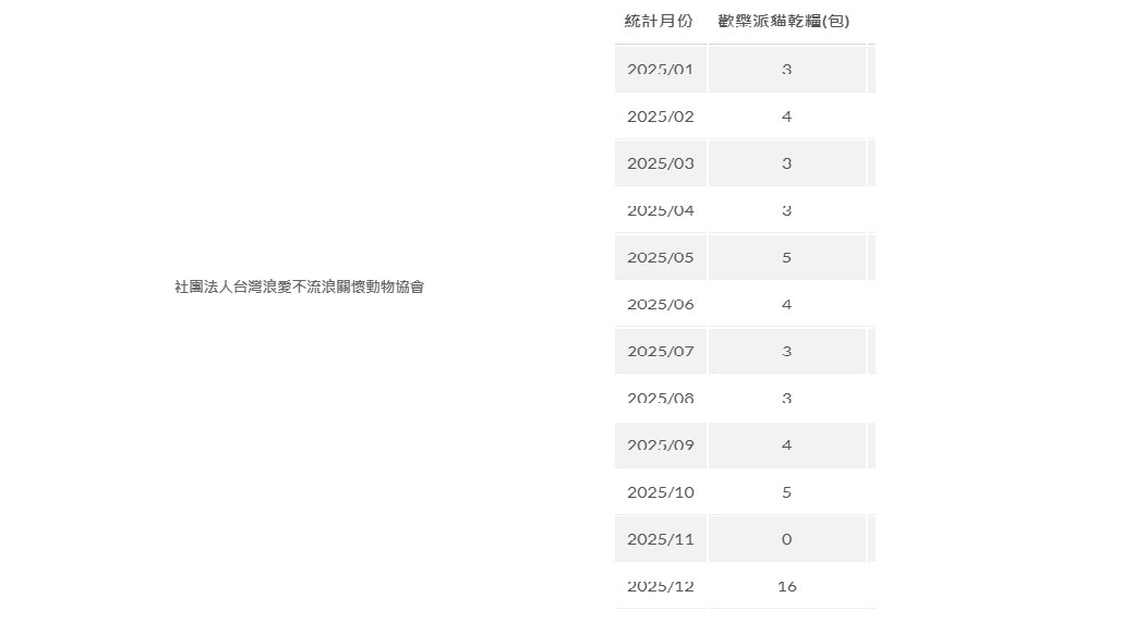 ★ 每月統計公佈於商品頁下方,依社團法人台灣浪愛不流浪關懷動物協會指定日期每月配送一次。