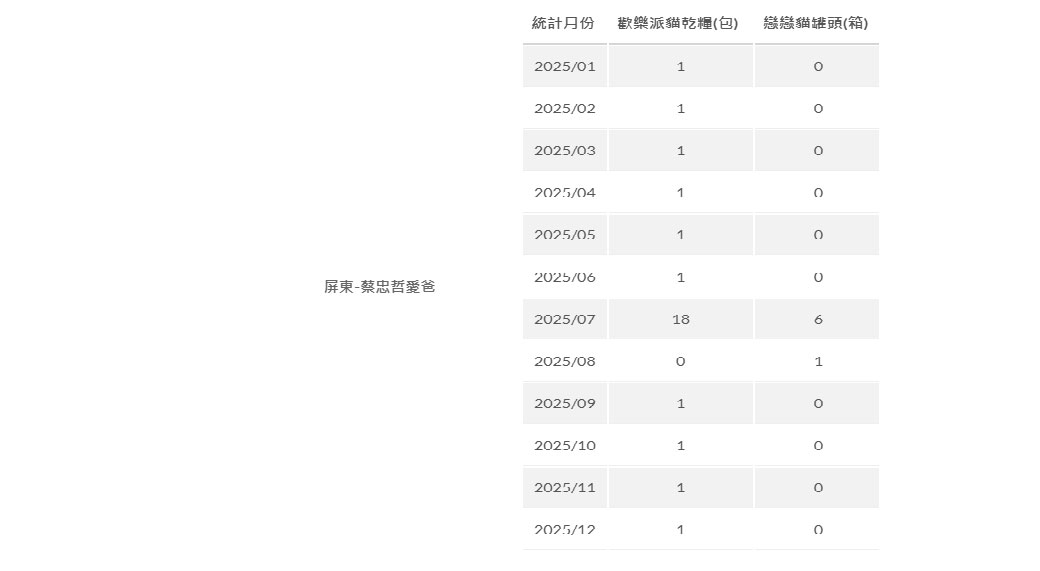 ★ 每月統計公佈於商品頁下方,依【屏東-蔡忠哲愛爸】指定日期每月配送一次。