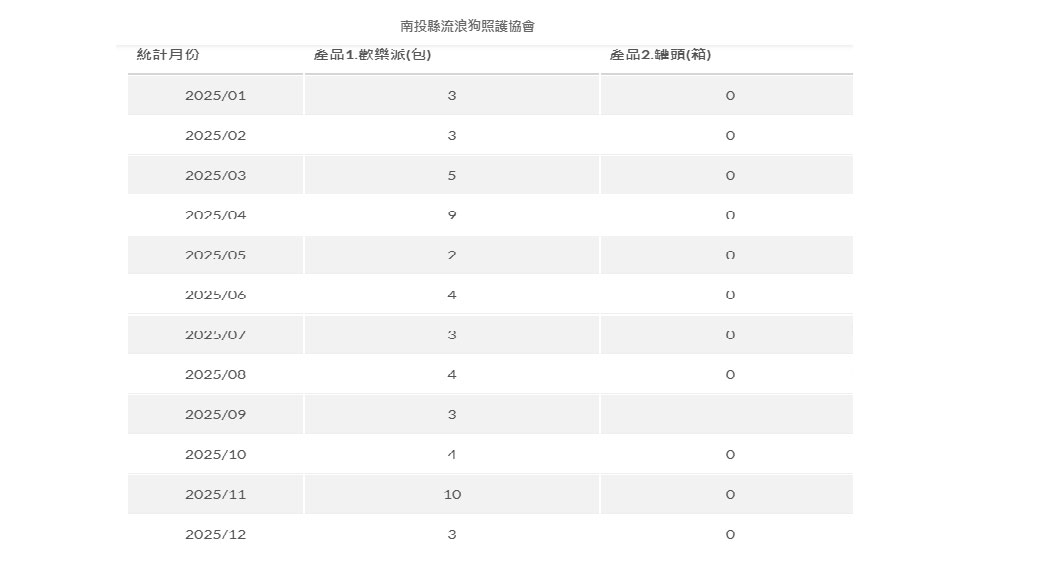 此為每個月的【南投縣流浪狗照護協會】團購專區,
